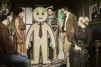 Černá komedie ze středoevropské kuchyně v režii Michal Vajdičky. Otec, matka a dospívající dcera se chystají na rodinnou návštěvu, aby podpořili ovdovělou příbuznou. Teta ovšem přichází v plné síle v doprovodu syna a s kartonovou atrapou otce. Podává se polévka. Všichni hrají hru na rodinné setkání, koneckonců kartonový host je pozoruhodný společník. Před hlavním chodem si jde lehnout a prvotní rozpaky se mění v kolotoč otázek. Jak sdílet stůl s někým, kdo se zuby nehty drží své iluze? Jak dlouho je možné a správné ji udržovat? Jak dlouho je možné zakrývat realitu? U dezertu už mladá generace pokládá provokativní otázky a fasáda se začíná rozpadat. Do jaké míry potřebujeme (patriarchální) řád a kde je naopak důležitá otevřenost novému? Nejsou z papundeklu (kartonu) i hodnoty a hesla, která si u rodinných stolů potvrzujeme? Otec je mrtvý, ať žije otec! Účinkují Klára Oltová, Jan Sklenář, Magdalena Zimová, Štěpánka Fingerhutová nebo Kristýna Jedličková a Miroslav Zavičár.