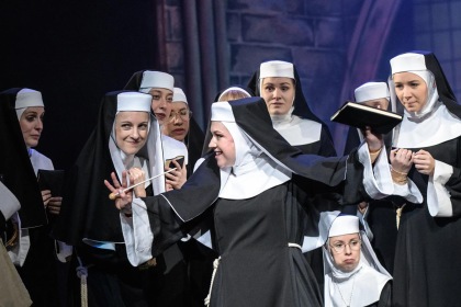 Božská muzikálová komedie plná humoru a nespoutané energie podle stejnojmenného filmu s Whoopi Goldbergovou z prostředí řádových sester, jejichž poklidný život se nečekaně obrátí vzhůru nohama! Když se zpěvačka nočního klubu Deloris van Cartier stane nechtěnou svědkyní vraždy, ukryje ji policie před gangstery na nejméně pravděpodobné místo – do kláštera! Klidnému životu řádových sester, vedených poněkud upjatou matkou představenou, se ale znuděná Deloris rozhodně nehodlá přizpůsobit a svojí nezkrotnou povahou obrací zažité pořádky vzhůru nohama. Nový život vdechne také klášternímu sboru, který promění v populární hudební senzaci, čímž ovšem přiláká i nechtěnou pozornost gangsterů. Muzikál s hudbou osminásobného držitele Oscara a hitmakera filmového studia Disney (Kráska a zvíře, Aladin, Na vlásku ad.) nabízí nejen energická hudební čísla, ale také zábavný i dojemný příběh o přátelství, odvaze a nalezení sebe sama. V režii Lumíra Olšovského hrají Charlotte Režná nebo Eva Staškovičová, Stanislava Topinková-Fořtová, Marek Holý nebo Přemysl Pálek, Pavel Klimenda nebo Josef Fečo, Roman Krebs, Kateřina Jechová nebo Viktorie Tandlerová, Ivana Andrlová nebo Ludmila Molínová, Soňa Hanzlíčková nebo Andrea Holá, Lilka Ročáková, Dušan Kraus nebo Jiří Šup, Matěj Butula, Martin Holec, Kateřina Chrenková, Kateřina Herčíková, Dagmar Hladíková nebo Lucie Pragerová, Jan Bytel nebo Petr Plašil, Kristýna Bečvářová, Nikola Blažejová nebo Gabriela Stejskalová, Nikola Ciprová nebo Magdaléna Hušková, Barbora Čmolíková, Michaela Dvořáková, Anna Marie Fenclová, Nikola Erneker, Tereza Koželuhová, Kristýna Málková nebo Kristýna Štychová, Hana Spinethová, Michaela Šálková nebo Yulia Tubolets, Kristina Stejskalová nebo Rozálie Trešlová, Eliška Trojanová, Venuše Zaoralová Dvořáková, Lucie Zvoníková, Ondřej Baumrukr, Vojtěch Placek a Martin Šefl.