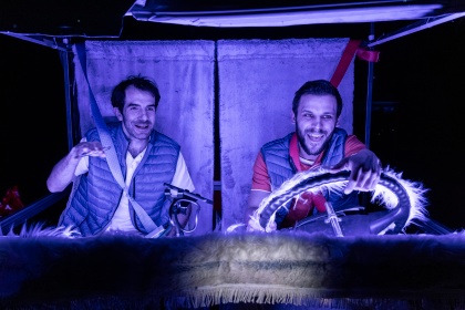 Divadelní road trip založený na dokumentarizaci života kamioňáků. Ekonomický růst, vysoká poptávka, nekonečný export a import, který nikdy neutichá. Ale díky komu vlastně? Kdo to je? Proč to jsou zrovna oni, jaký je jejich příběh a proč jsou pro náš svět tak nepostradatelní? Novodobé otrokářství, nebo silná láska k těžkým strojům? Nová autorská inscenace je sociální sondou zkoumající identitu řidičů kamionů na třech metrech čtvrečních, zaprděném sedadle s krabičkou cigaret, rozpustnou kávou a výhledem na krásnou a romanticky mizející přírodu. Tvůrčí tým vedený režisérsko-dramaturgickým duem Martin Krupa – Tinka Avramova vytvořil text na základě časosběrných dokumentárních rozhovorů s dopravci, řidiči kamionů a jejich rodinami, doplněných cestami po Evropě a odbornými rešeršemi. Výsledkem je multimediální inscenace s originální vizualitou, loutkami, projekcemi, autorskou hudbou a performancí, která umožní divákům nahlédnout do života řidičů „z první ruky“ – z perspektivy kabiny kamionu, prostoru, odkud se svět i krajina ztrácejí ve zpětném zrcátku. Hrají Lukáš Černoch, Tomáš Červinek a Eliáš Jeřábek. Inscenace vznikla ve spolupráci s Crater Collective z. s.