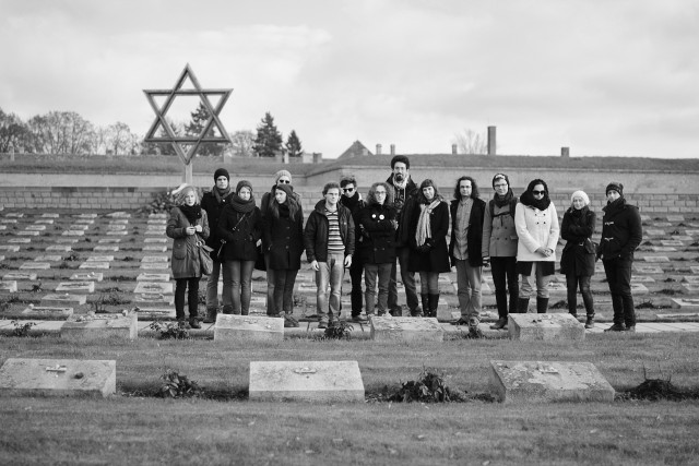 Petr: Ihned po první čtené zkoušce jsme vyrazili čerpat inspiraci. Vydali jsme se po trase Bubny, Terezín a Osvětim. Věřím, že právě cesta na místa pracovních a koncentračních táborů na výsledek, který divák může vidět na jevišti, měla zásadní vliv. Před cestou jsme nechtěli mít žádnou jevištní zkušenost a já jsem upřímně čekal na to, co s herci výlet udělá. Předpokládal jsem, že si mnozí z nich zapamatují učebnicové pohledy na nejznámější místa, ale realita byla jiná. I ti nejotrlejší měli v Birkenau slzy v očích. V textu hry se objevují konkrétní místa a my šli po jejich stopách. Najednou si všichni mohli představovat situaci v rolích odsouzených svědků i dorozců, kteří všemu přihlíželi. Byl to neuvěřitelný zážitek, který umocňoval fakt, že jsme všichni spolu.